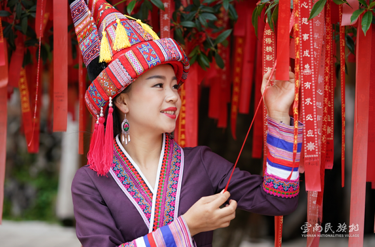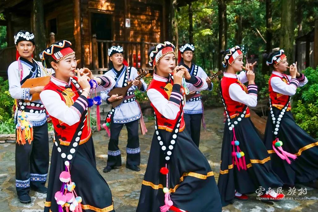 彝族在云南境內(nèi)約471萬人,是省內(nèi)人口最多、分布最廣的少數(shù)民族,主要聚居在金沙江、元江流域和哀牢山、無量山腹地。彝族是一個(gè)能歌善舞的民族,民間打歌、跳樂之風(fēng)盛行,大三弦、跌腳舞久負(fù)盛名。火把節(jié)是彝族最具特色的民族節(jié)日。彝族村占地50余畝,三虎浮雕墻與虎頭內(nèi)祖師形象表現(xiàn)了彝族虎鷹文化。太陽(yáng)歷廣場(chǎng)圖騰柱上有太陽(yáng)、虎、火和八卦圖形象,周圍環(huán)繞著10個(gè)朝向不同的月球造型,外圓周有12生肖石雕。依山而建的“...